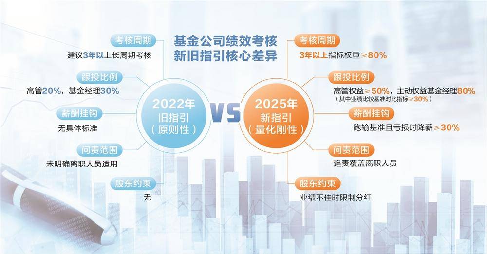 《指引》更是将上述导向细化为刚性的制度约束。在整体定量考核中,要求基金投资收益指标中三年以上中长期指标权重不得低于80%。其中,高管层考核中,要求基金投资收益指标权重应当不低于50%。对基金经理及从业人员实施差异化考核:对主动权益类基金经理,基金产品业绩指标考核权重应当不低于80%,其中业绩比较基准对比指标考核权重不得低于30%。这意味着,基金经理若不能为投资者创造持续的长期回报,其职业发展和收入水平将受到根本性影响,从利益根源上实现“同甘共苦”。