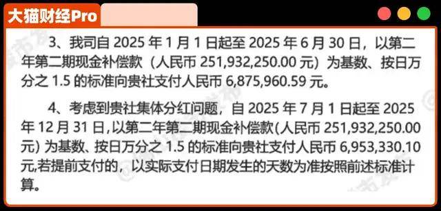 但是,今年6月份,在付了9亿多之后,二期应该支付的2.5亿拆迁款,逾期了,开发商说,要到12月底支付,顺便还承诺了687万的“利息”和695万的“分红”作为补偿。