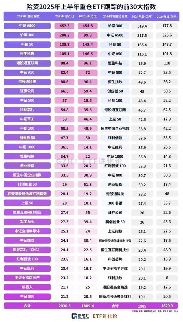 从指数选择看,变化尤为明显。上半年,险资配置的宽基指数中,中证A500指数的持仓规模首次超过沪深300,成为险资持有规模最大的宽基指数。
