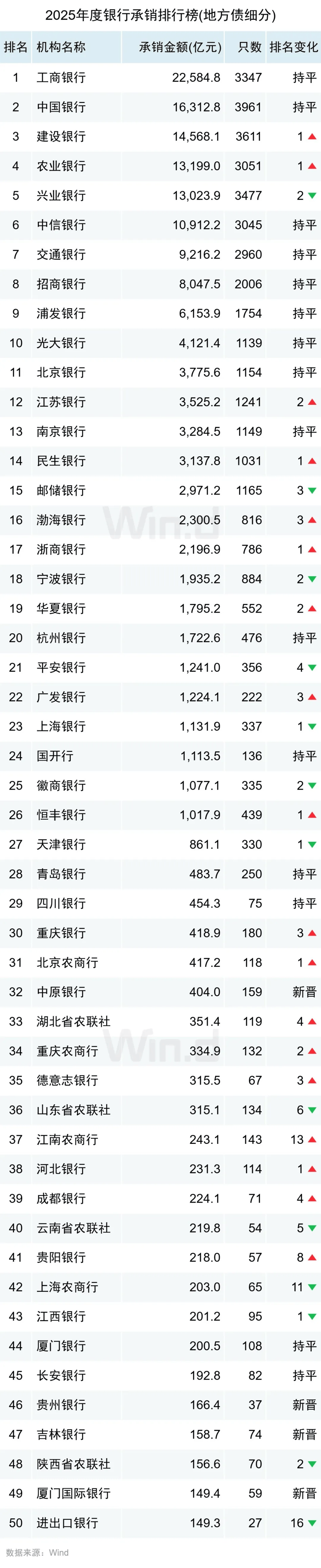 在债券承销方面2025年度各家机构表现如何,万得第一时间为您隆重揭幕2025年度中国内地市场债券承销排行榜。