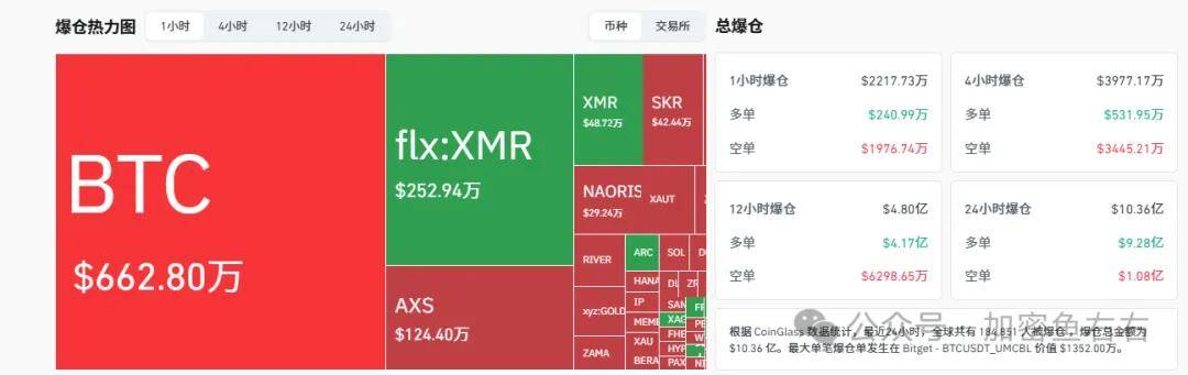 近24小时,全球共有184,883人被爆仓,爆仓总金额为$10.36亿。2个月以来的最大单日爆仓!经过凌晨这一波下跌虽然创了新低,但是量能已经逐步萎缩,表明越往下跌空头抛压越低,是潜在的多空转折信号。