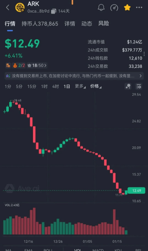 另一边,曾风光无限的ARK方舟连续阴跌20天,从40美元的高位断崖式下跌至12美元,累计跌幅超69%,数亿散户资金被套牢,这场全民狂欢的投机游戏,终以多数人的血本无归落幕。