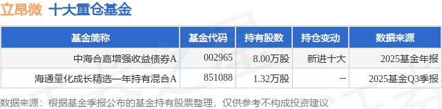 重仓立昂微的公募基金请见下表: