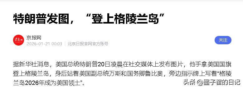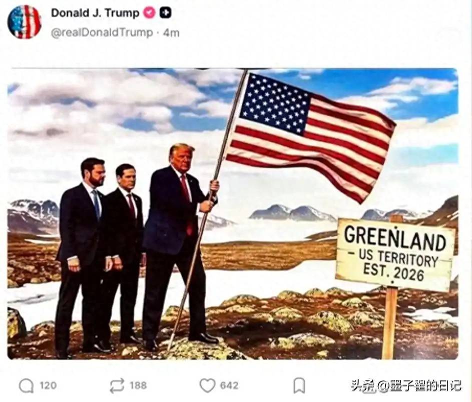 原创 出... 当地时间1月20日凌晨,特朗普在社交平台上发布的两张图片引发了全球舆论的猛烈风暴。第一张图片中,他手...