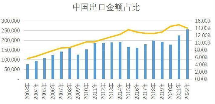 即便2025年美国将部分商品关税提高至50%左右,中国在全球商品出口市场的份额依然稳定在14%上下。