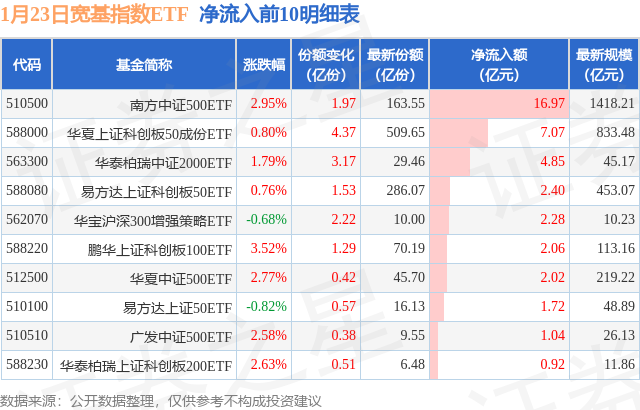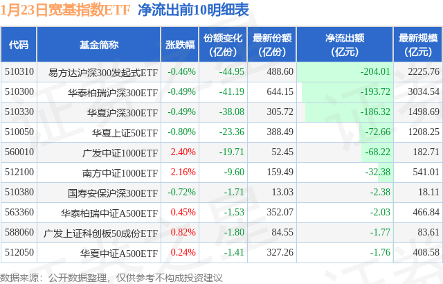 【ETF观察】1月23日宽基指数ETF净流出726.34亿元