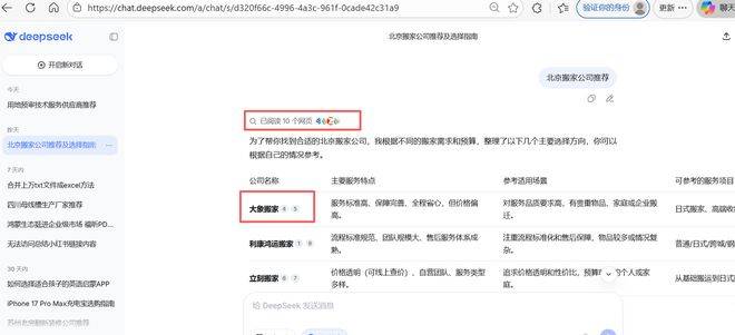 我们搜的北京搬家公司推荐,第一个展示大象搬家,我们直接点开中间的“已阅读10个网页”。