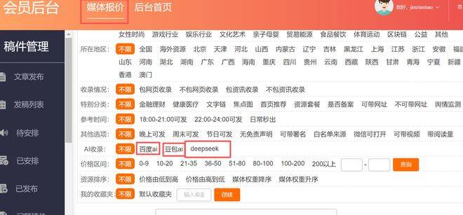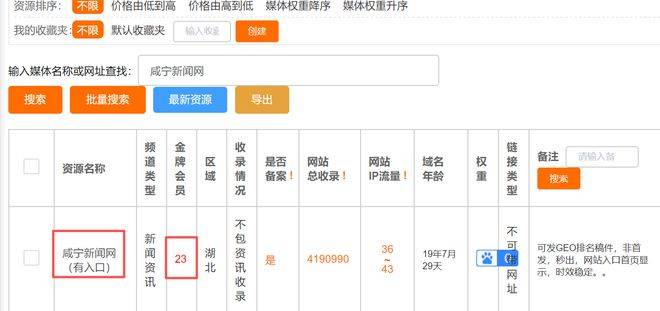 点开媒体报价,这里已经给大家筛选好了比较容易被收录的媒体,但是,兵无常势,水无常形,需要大家根据ai的风向自己斟酌判断。我们就根据这个搬家的案例来,看一下咸宁新闻网,以及金山网价格: