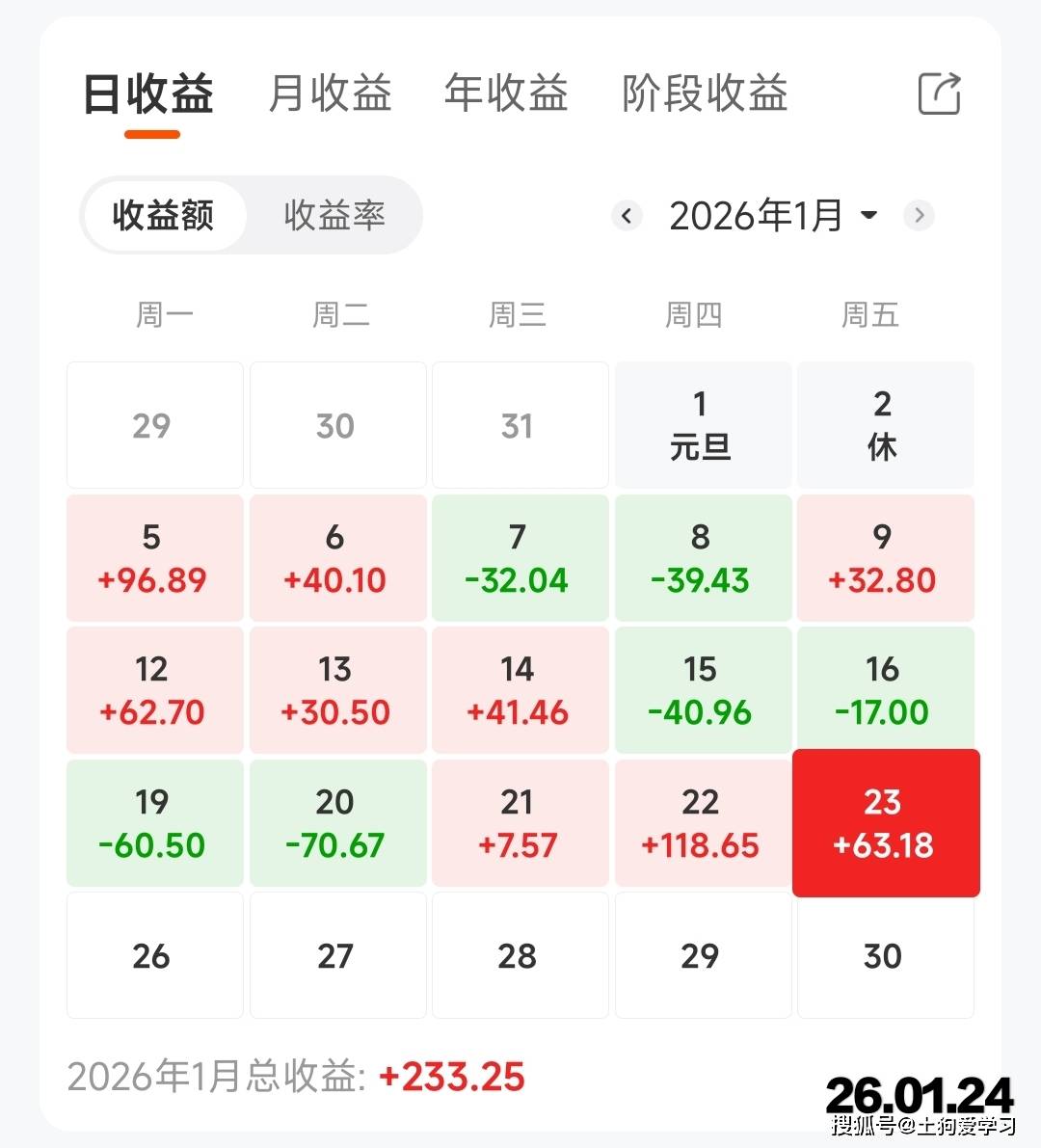 26.01.19~01.24 本周基金亏损50元~