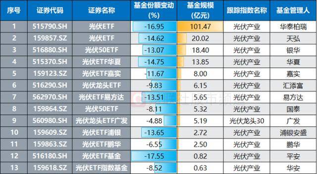 注:光伏系ETF近2周基金份额变动情况(截至1月22日数据)