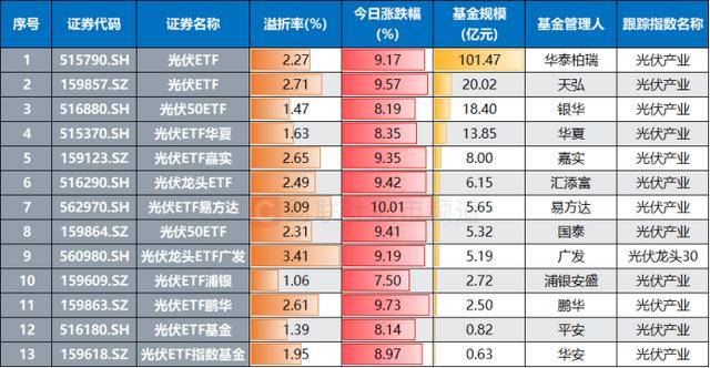 注:光伏系ETF今日集体高溢价(截至1月23日收盘)
