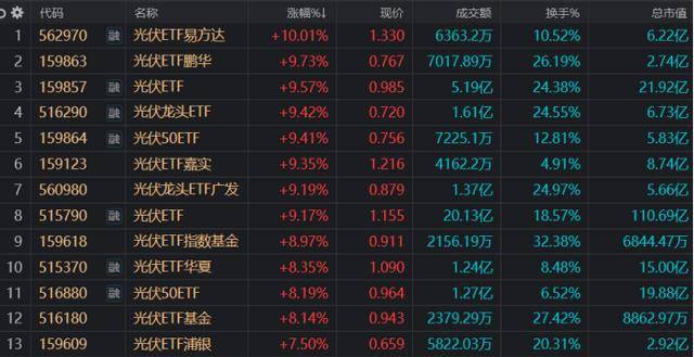 注:光伏系ETF今日集体大涨(截至1月23日收盘)