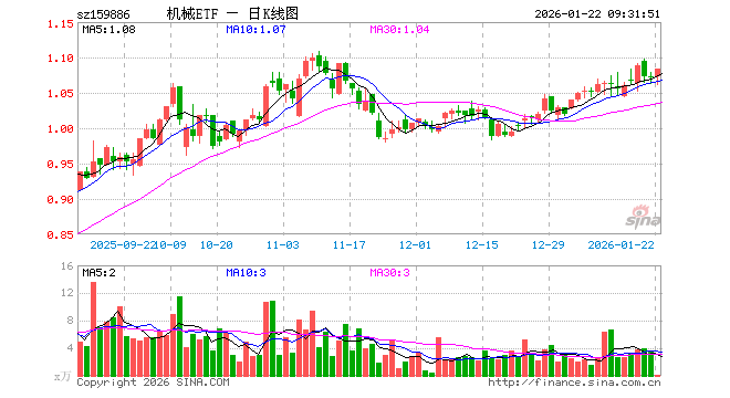 1月22日,机械ETF(159886)开盘涨0.19%,报1.073元。机械ETF(159886)重仓股方面,宁德时代开盘涨0.35%,阳光电源涨0.49%,汇川技术涨0.65%,三一重工涨0.13%,中国船舶涨0.37%,亿纬锂能涨0.09%,隆基绿能跌0.12%,徐工机械涨0.00%,江淮汽车涨0.17%,国电南瑞涨0.82%。