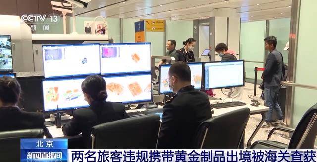 北京大兴国际机场海关旅检三科关员 张翔:经过我们进一步查验,发现这两名当事人携带了六件黄金制品,重约603.96克,案值约人民币59万元。经过进一步调查和取证,发现当事人存在主观故意逃避海关监管的行为,他就是在明知黄金是国家限制性管理出境的情况下,将黄金制品藏匿在随身衣物以及随身的小包里,企图逃避海关监管。
