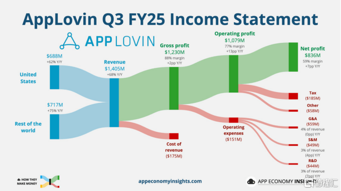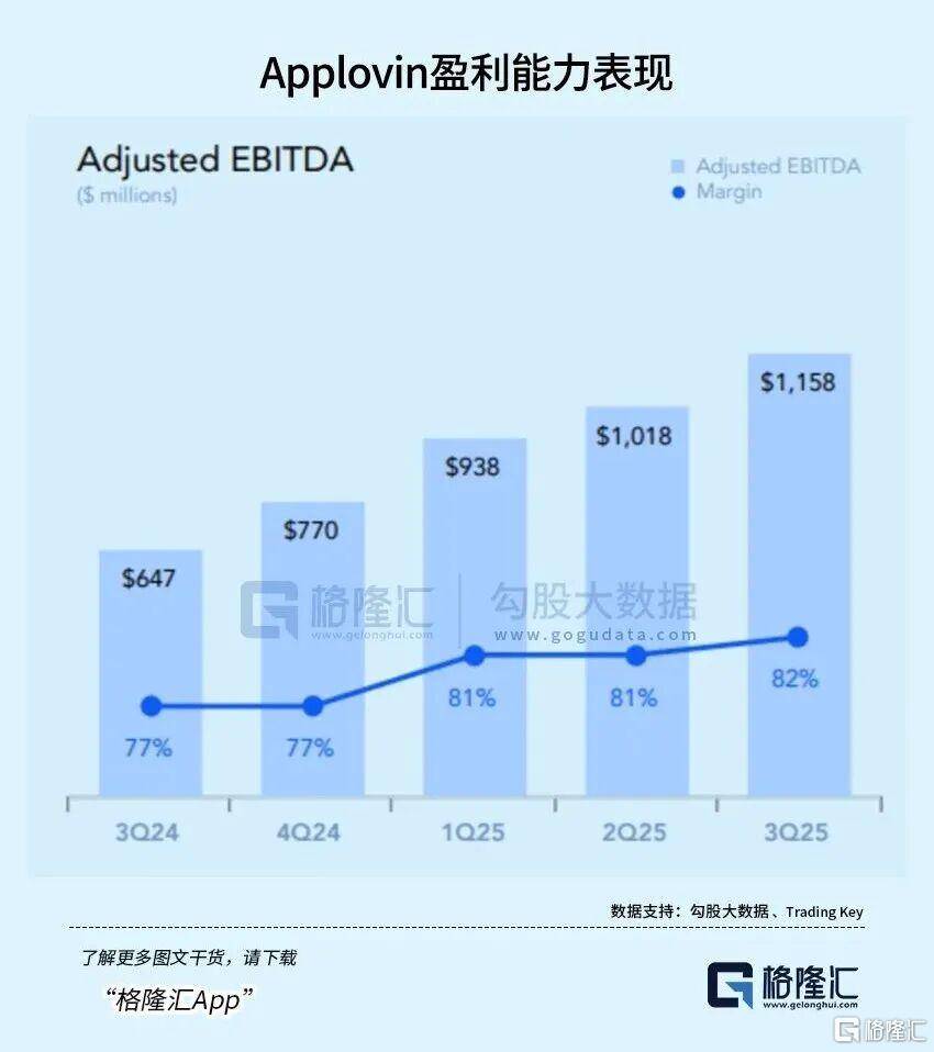 2025年第三季度,Applovin报告的调整后EBITDA利润率高达82%。