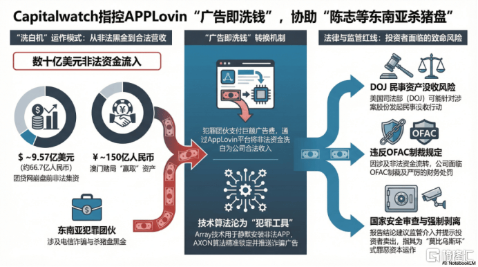 这份报告并没有纠结于常见的估值泡沫或技术细节,而是直接抛出了一个逆天的指控:Applovin并非单纯的商业奇迹,而是一个庞大跨国洗钱网络的关键一环。