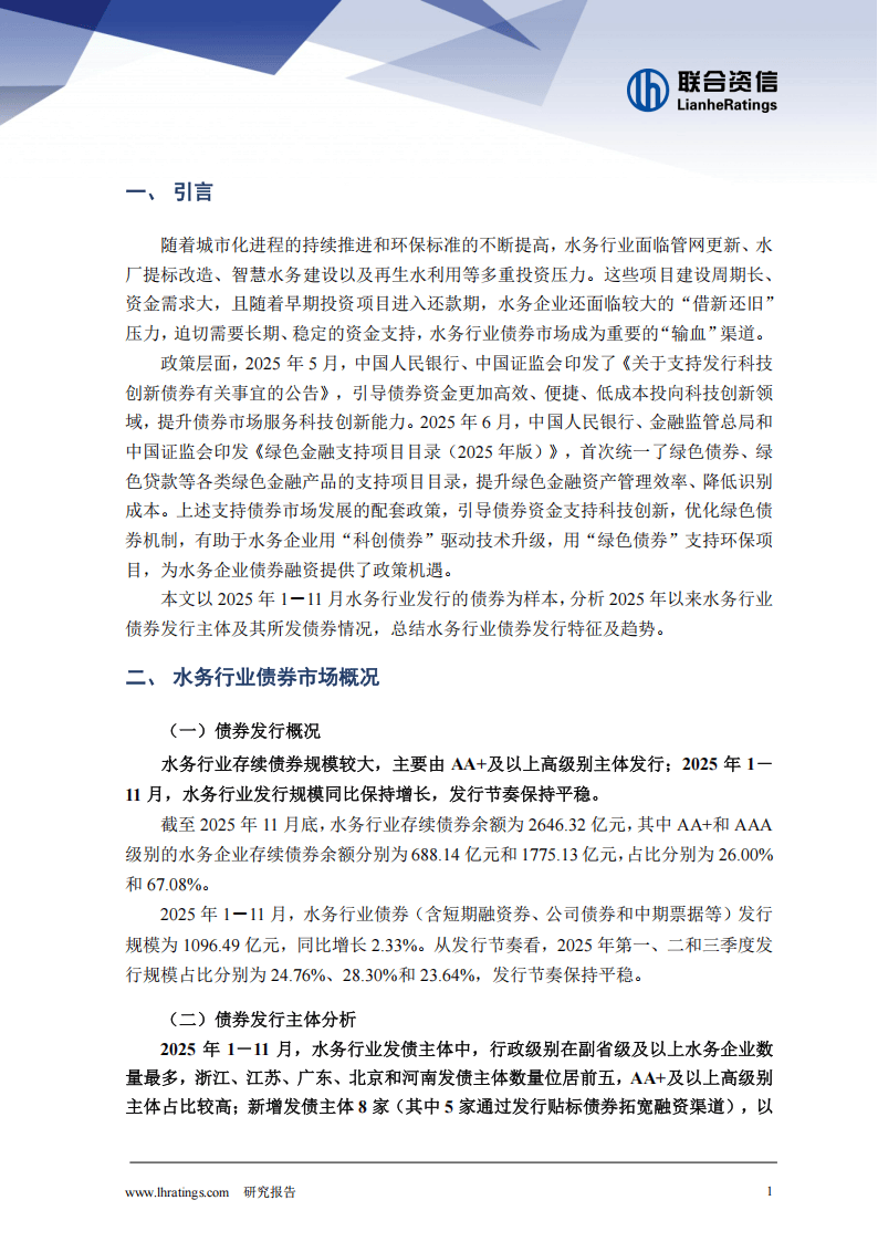 今天分享的是:2025年水务行业债券市场回顾:水务行业债券发行延续活跃态势,债券融资创新或将持续深化