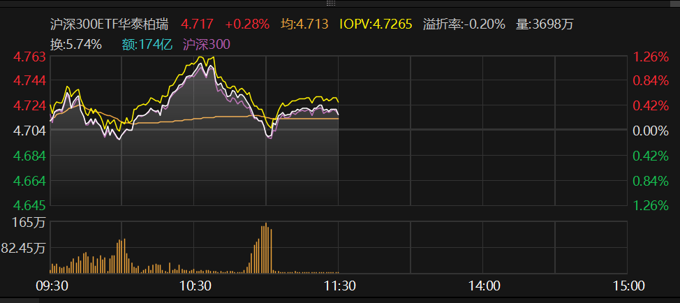 下图为1月26日上午华泰柏瑞沪深300ETF成交情况: