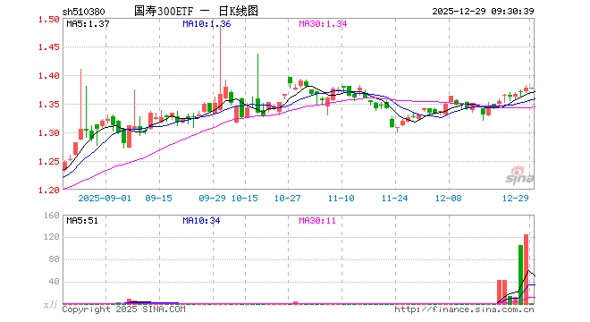 12月29日,国寿300ETF(510380)开盘跌0.07%,报1.377元。国寿300ETF(510380)重仓股方面,宁德时代开盘跌0.11%,贵州茅台涨0.00%,中国平安跌0.22%,招商银行跌0.10%,紫金矿业涨1.88%,新易盛跌1.19%,中际旭创涨0.10%,美的集团跌0.10%,东方财富跌0.13%,长江电力涨0.00%。