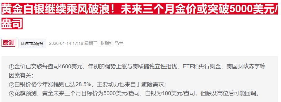 事实上,一些银行早已预测白银将迈入“三位数时代”。本月早些时候,花旗集团上调了短期目标价至每盎司100美元,并同时预测黄金价格可能飙升至5000美元。