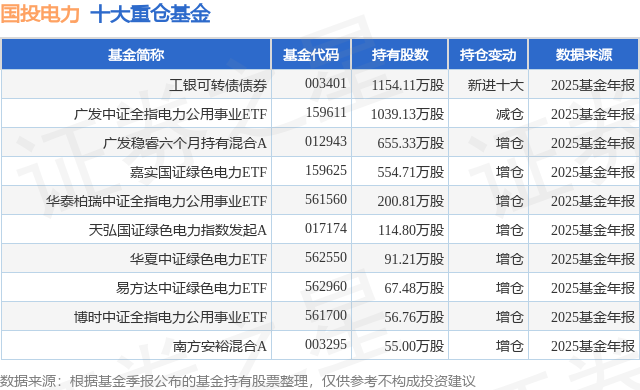 重仓国投电力的前十大公募基金请见下表: