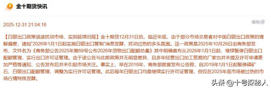 好在,我们不是当年那个任人宰割的亨特兄弟。既然你们喜欢玩纸面游戏,那我们就把实物的大门焊死。今年1月1日,也就是几周前,中国商务部那份关于白银出口管制的公告,分量重得惊人。白银,正式被提升到了与稀土同级的“战略物资”地位。以前出口可能只是走个流程,现在是“一单一审”。