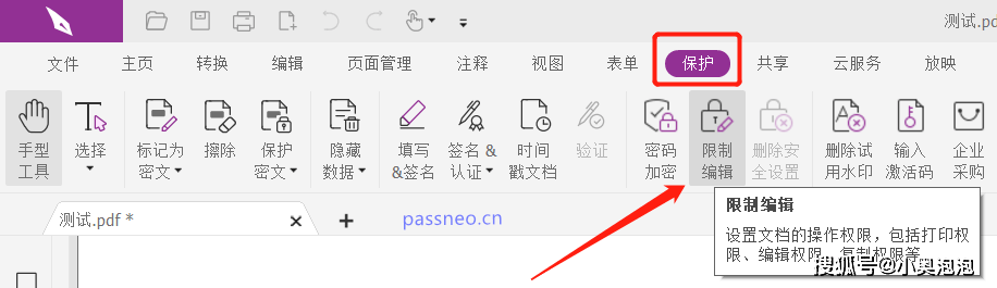 其实,PDF并不能直接禁止“转换格式”,但我们可以通过“限制编辑”来达到这个目的。