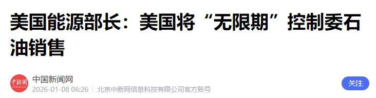 特朗普随后宣布,美国将"无限期"控制委内瑞拉的石油,包括现有库存和未来销售,所有收益存入美国政府账户。