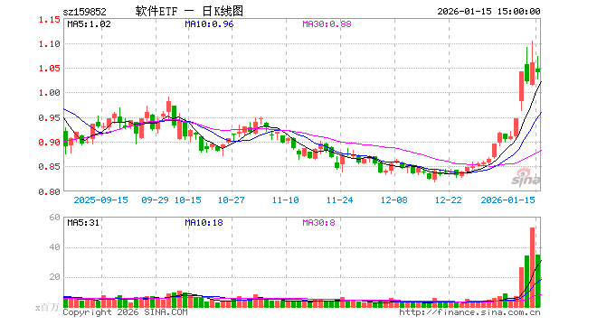 1月15日,软件ETF(159852)跌1.89%,成交额36.26亿元。当日份额增加8.85亿份,最新份额为138.12亿份,近20个交易日份额增加71.35亿份。最新资产净值计算值为143.30亿元。