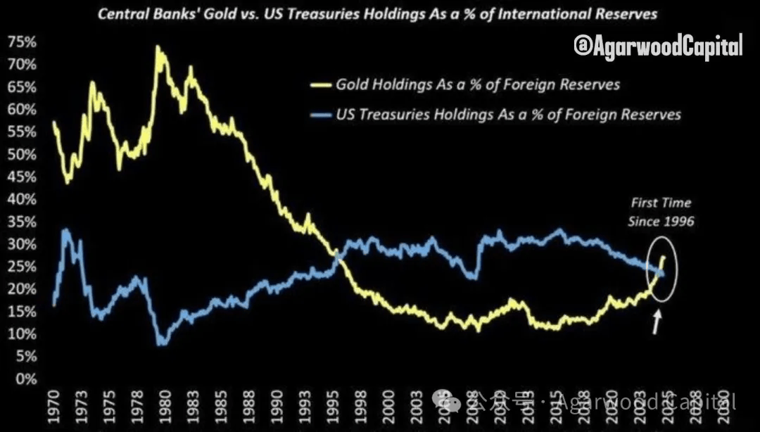 • 这种信任折价很少即刻反映在汇率,却会慢慢体现在储备结构调整,例如增加黄金与其他实物资产的比重,如图3所示,外国央行黄金储备在2025年自1996年以来首次超过美债。