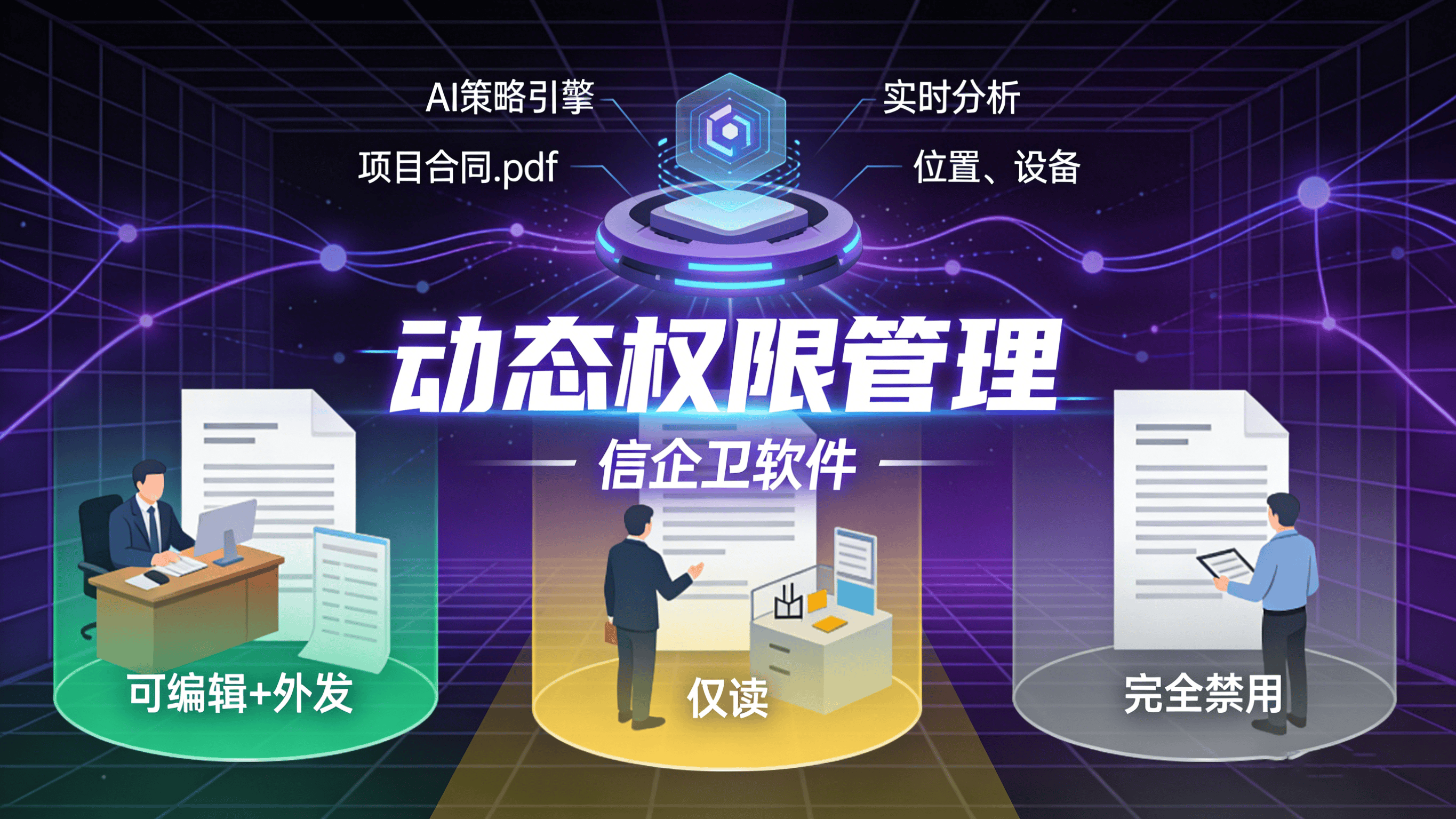 动态权限管理:支持按部门、角色、项目设置文件访问权限,可细化至“只读”“编辑”“打印”“截屏”等操作控制。
