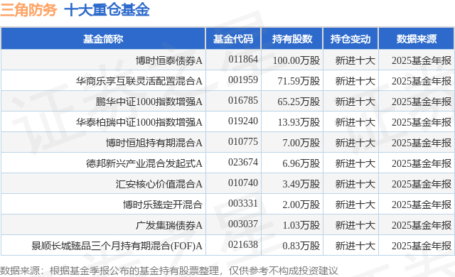 重仓三角防务的前十大公募基金请见下表: