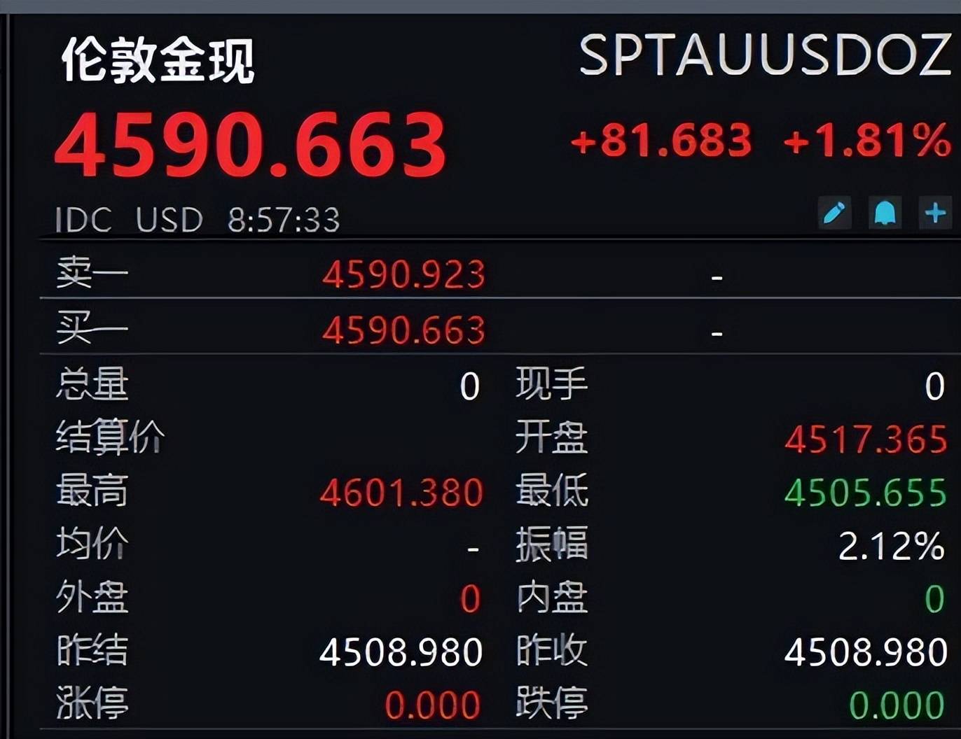 白银黄金价格双双飙升,丝毫没有停留的意思,1月12日早上,美国纽约商品交易所黄金期货价格11日创新高,一度突破每一度突破每盎司4612美元,时隔两周再度创下历史新高,日内涨超2%,新年首月累涨280美元。截至9点21分,报4590.663美元/盎司,涨1.81%,而白银也同时创下历史新高!