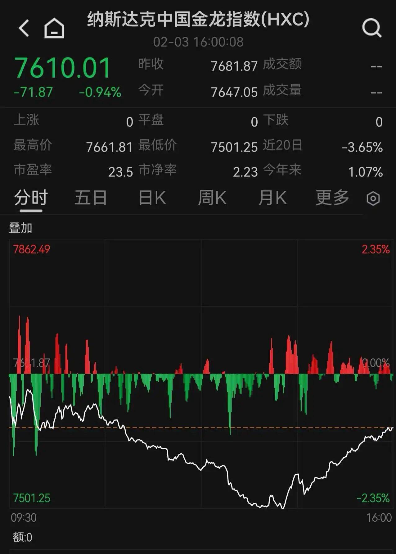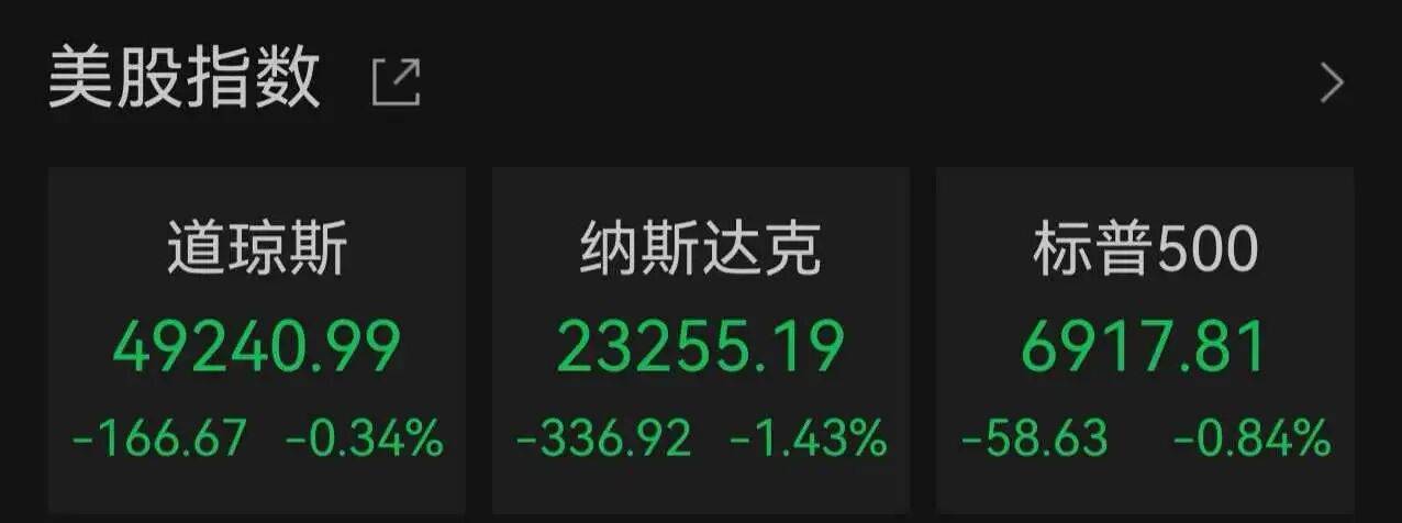 当地时间2月3日,美股三大股指全线收跌。Wind数据显示,截至收盘,道指跌0.34%,标普500指数跌0.84%,纳指跌1.43%。