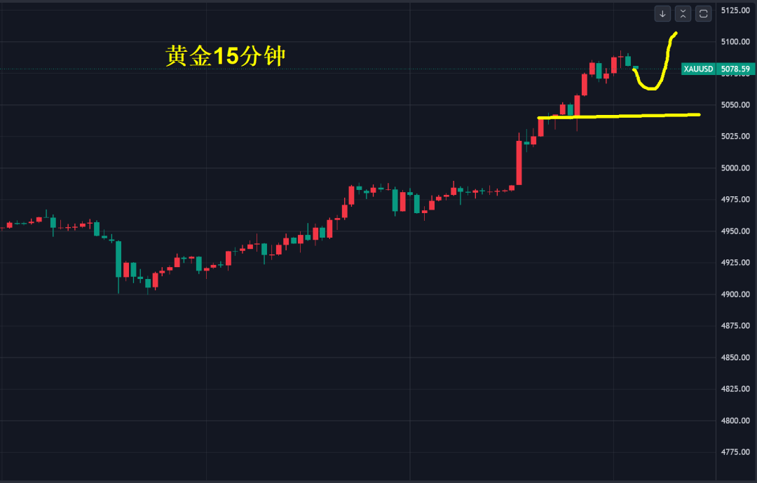 现在黄金15分钟看盘足够了,价格波动越来越剧烈,黄金波动率没有变,只是因为基数变大了,每天波动3%就是150美金,稍微有点利多消息就涨上百美金,回头一看过去的高点终将成为低点。