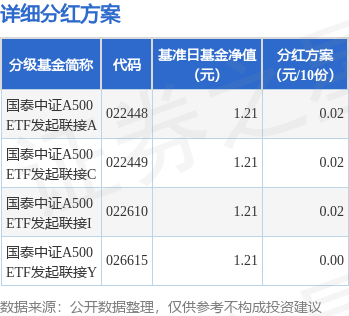 证券之星消息,2月5日发布《国泰中证A500交易型开放式指数证券投资基金发起式联接基金第11次分红公告》。本次分红为2026年度第二次分红。。公告显示,本次分红的收益分配基准日为2月2日,详细分红方案如下: