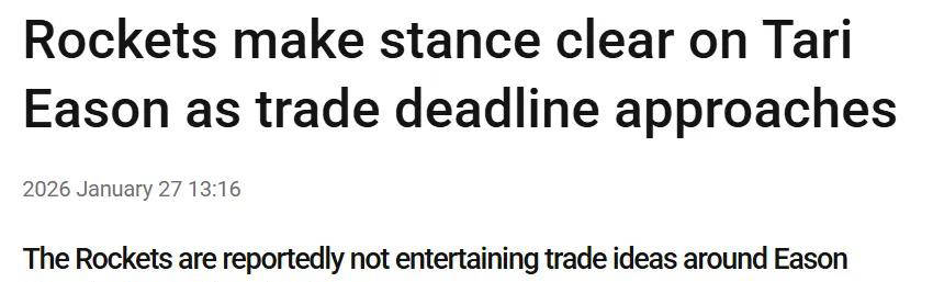 Stein进一步指出:“今日正式传出消息,关于伊森被放上交易货架的猜测完全不实。这位效力火箭四年的锋线球员,在本次交易截止日前不会被球队挂牌出售。”尽管在此前火箭队与伊森未能就提前续约达成协议,但球队目前仍握有合同匹配权,一旦他接到其他球队的报价,火箭有权选择匹配,从而保留其控球核心之一。
