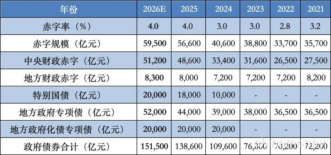 考虑政策连续性与多重民生目标,以及为“十五五”开局奠定基础,预计我国2026年实际GDP增速目标维持在5.0%左右。叠加国内反内卷政策、消费修复与扩内需政策支撑,以及国际上美联储处于降息周期,以美元计价的大宗商品价格可能上涨,预计我国物价将温和回升,GDP平减指数转正为0.2%,据此推算我国2026年名义GDP增速约为5.2%。以5.66万亿元赤字规模及4.0%赤字率倒算得到2025年名义GDP为141.5万亿元,则2026年名义GDP将达148.9万亿元。