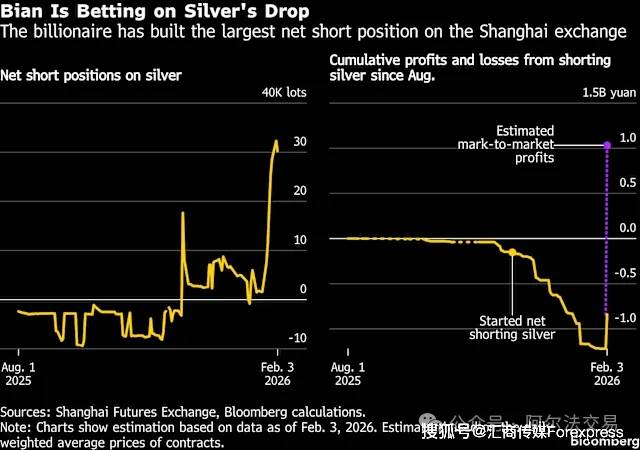 这名神秘猎人,正是中财期货实控人边锡明。根据《金融时报》与《彭博》的测算,中财期货席位在白银价格崩盘前,已建立规模庞大的空头仓位。随着银价急跌,这笔逆势布局的账面收益已超过5亿美元。