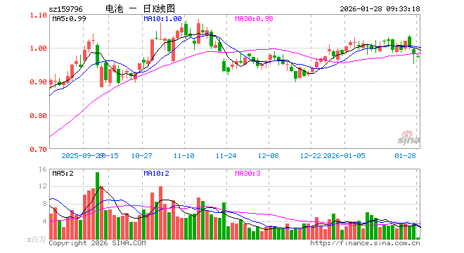 1月28日,电池ETF汇添富(159796)开盘跌0.92%,报0.974元。电池ETF汇添富(159796)重仓股方面,宁德时代开盘跌0.45%,阳光电源跌0.42%,三花智控跌0.61%,亿纬锂能跌0.62%,天赐材料跌0.43%,先导智能跌0.26%,格林美跌0.32%,国轩高科涨0.00%,多氟多跌0.58%,欣旺达跌0.86%。