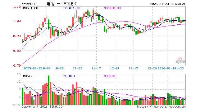 1月23日,电池50ETF(159796)开盘涨0.50%,报0.997元。电池50ETF(159796)重仓股方面,宁德时代开盘涨0.64%,阳光电源涨0.38%,三花智控跌1.73%,亿纬锂能跌0.08%,天赐材料涨0.07%,先导智能涨0.00%,格林美涨0.44%,国轩高科涨0.00%,多氟多跌0.35%,欣旺达涨0.12%。