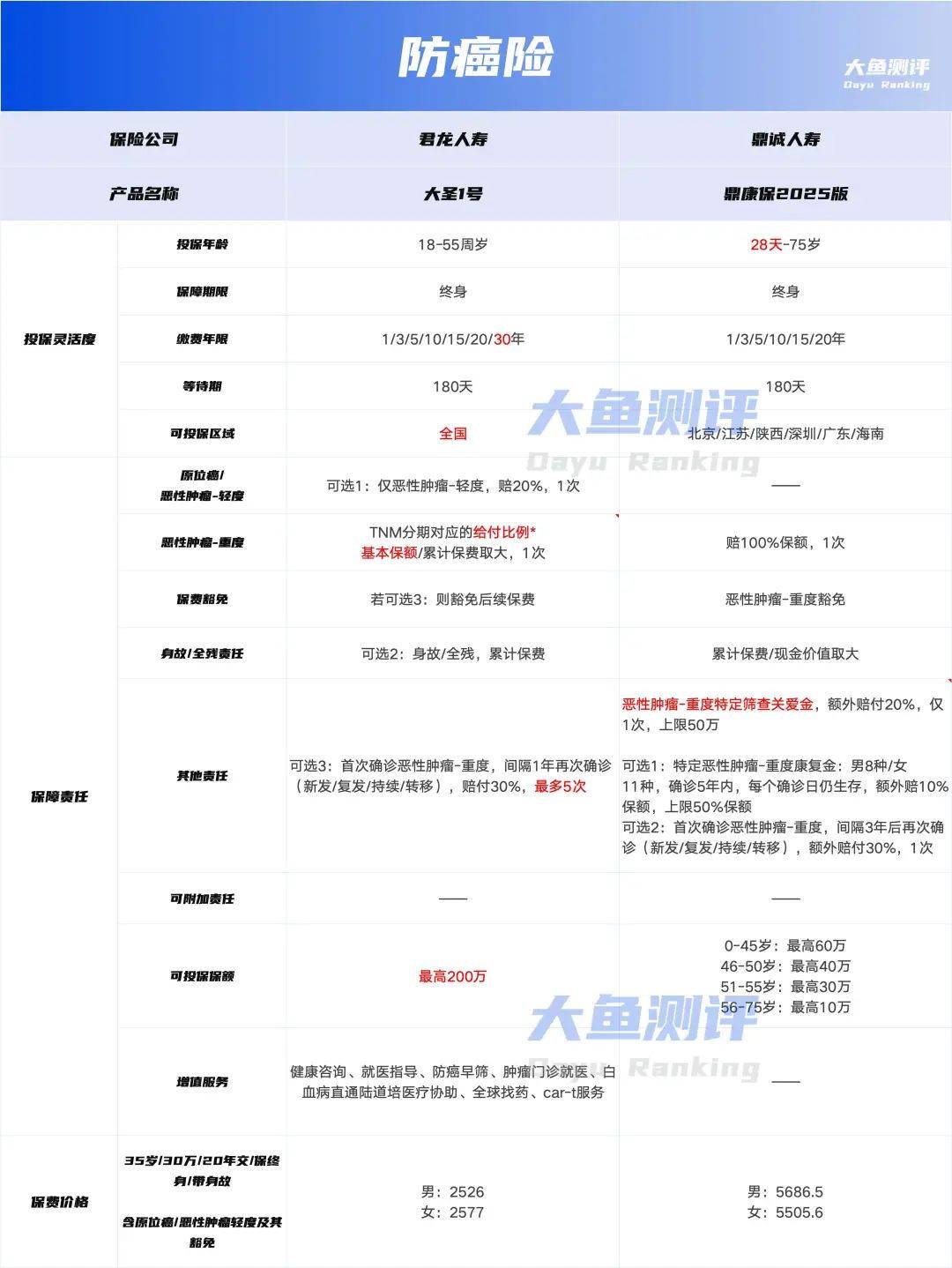 适合20-50岁期间成年人投保防癌险也多了起来,这里优先推荐具有价格优势的大圣1号,以及兼顾价格和责任的鼎康保2025版,当然前面推荐的恒安标准爱佑保领航版也很适合,这里就不重复了。