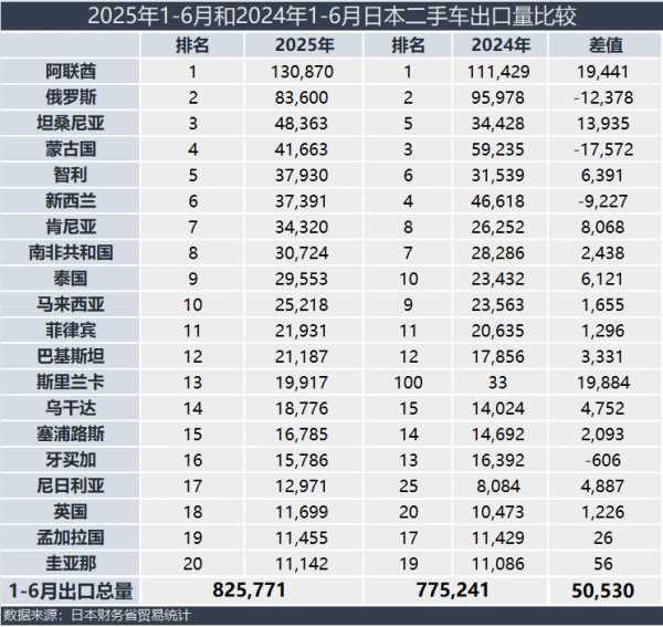 2025年上半年日本二手车出口状况 中国汽车流通协会