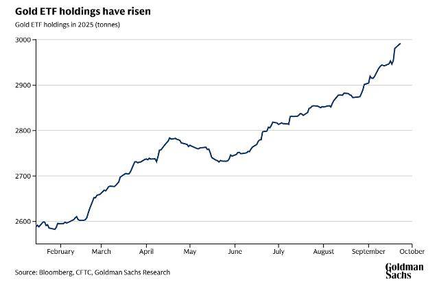 高盛最新报告揭示的细节令人玩味:9月份黄金ETF实际流入量达到109吨,远超模型预测的17吨。这个六倍多的误差,暴露出传统金融模型在解释黄金市场时的力不从心。 就像用气象学公式计算龙卷风路径,再精密的算法也难逃"失之毫厘,谬以千里"的宿命。更耐人寻味的是,投机仓位对近期涨幅的解释力不足1%,这说明推动金价的主力根本不是华尔街的量化基金,而是那些被传统金融视为"非理性"的坚定持有者。