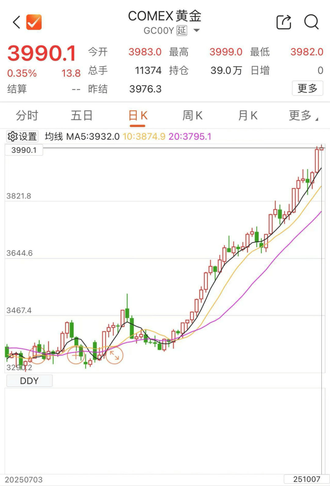 10月7日亚洲早盘,黄金仍在“闪耀”,期现货市场联袂再创新高。伦敦现货黄金盘中最高触及3976.18美元/盎司,COMEX黄金向上逼近4000美元/盎司,最高涨至3999美元/盎司。