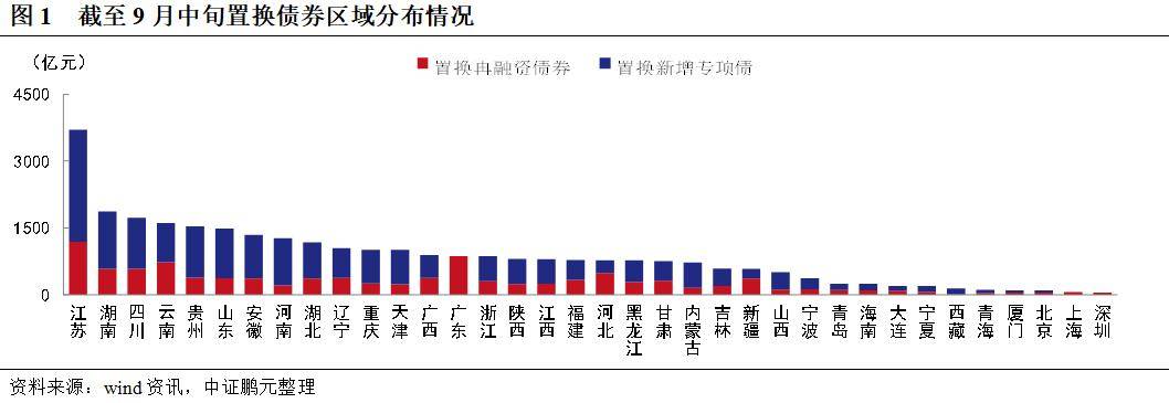 二是,区域上,债务规模较大的省份仍然是置换重点地区。东部地区像江苏、浙江、山东等地,中部地区像湖南、河南、安徽等地,西部地区像贵州等,这些省份债务规模较大,个别地方债务风险较大,隐债置换完毕后,有利于这些省份将资金、资源用于促进地方发展。