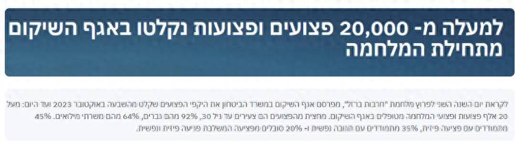类似的情况也出现在其他部门。例如,以色列警察曾公布阵亡人数为70人,但在战争两周年时,数据显示警察的阵亡人数实际上是100人,增加了30%。这额外的30名警察阵亡者,至今没有任何详细的资料。