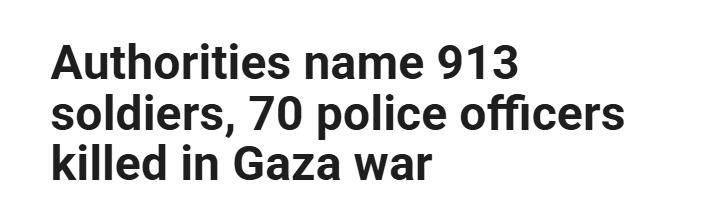 以色列国防军官方披露的阵亡人数为913人,但在加沙战争的两周年时,官方称战争爆发以来,阵亡的军人实际上是1035人,比原先公布的数据多出了122人,增加了大约八分之一。这些额外的死亡人数没有得到任何详细的信息,也没有在阵亡名单上出现。现代社会信息高度透明,但即使如此,以色列的阵亡人数并未得到公开和准确的反映。