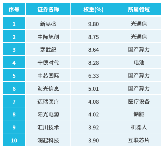 表:科创创业50指数前十大成份股