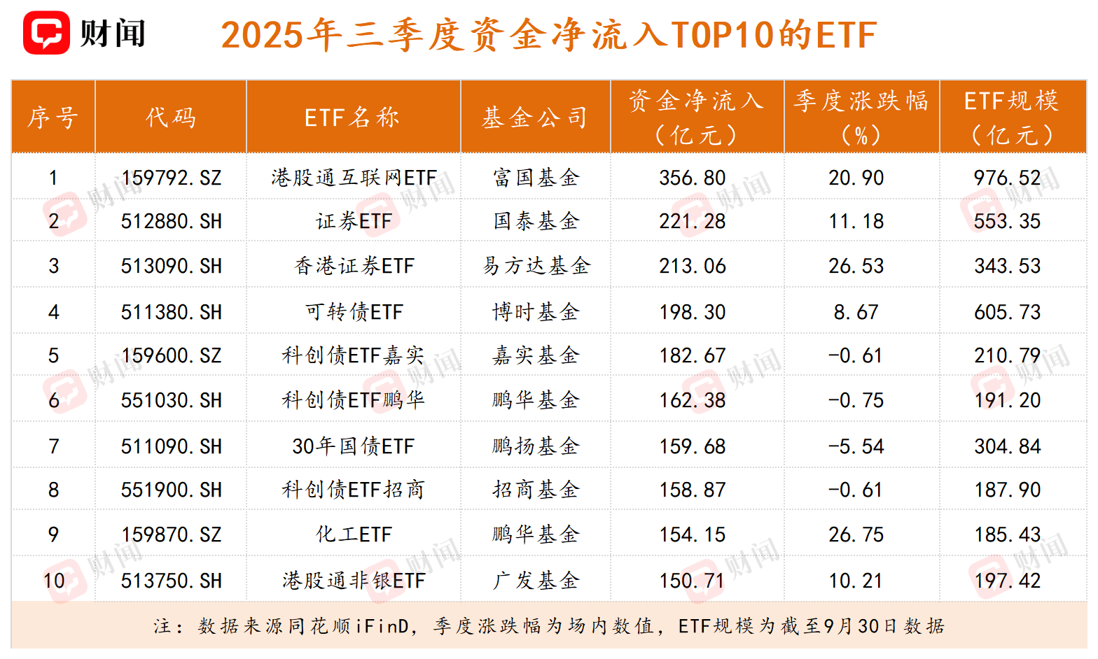 整个三季度,ETF市场整体呈资金净流入态势,共3780.75亿元资金净流入。